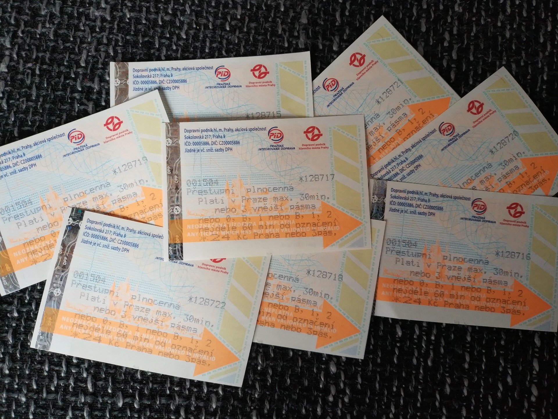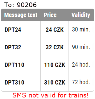 Where to buy tickets: 1) at yellow ticket machines at all metro stations and some tram/bus stops which accept coins and sometimes credit cards; 2) at tobacco shops; 3) at information centres; 4) from bus drivers but it's more expensive; 5) via SMS; 6) via mobile application "PID Litacka".